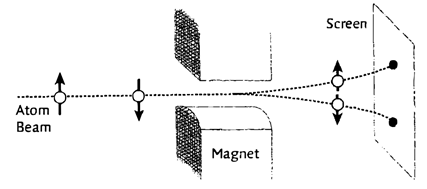 실험에 대한 슈테른의 생각은 “너무 추워서 밖에 나가기엔 좋지 않은” 차가운 아침의 사색 동안 구체화되었다. 그의 상상력에 불을 붙인 이 생각의 핵심은 공간 양자화의 탐침으로 자기를 사용하는 것이었다. 그의 실험 기획은 아래와 같은 컴퓨터 모델에 기반한다. 즉 궤도를 그리는 전자는 아주 작은 자기장을 생산해야 하는데, 이것은 그에 따라 외부 자기장와 상호작용을 통해 원자가 작동하기 위한 어떤 수단을 제공한다는 것이다. 특히 그것은 슈테른에게 자석들의 특정 배열을 활용하여 우리가 다른 지향들을 가진 전자들을 분리하기 위해 외부 장의 상이한 배열의 이점을 취함으로써 이론적으로 궤도를 도는 전자 평면의 이산적 지향을 전개할 수 있다. 그는 은원자 광선과 외부 장의 배치를 활용하자고 제안한다. 그것은 분리된 경로를 따르는 은원자들의 핵을 도는 전자들의 두 가지 가능한 지향이다. 자기장에 관련된 하나의 지향을 가진 전자들은 윗방향으로 굴절된 것이고, 반대 지향을 가진 전자들은 아래 방향으로 굴절될 것이다. 다시 말해 은원자 광선은 자석들로 인해 창조된 외부 장을 통과해 가면서, 유리판으로 된 탐지 스크린 위에 둘로 나누어진 흔적들을 남기고 갈라질 것이다(그림 14).