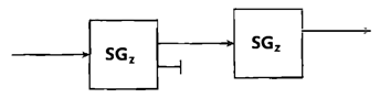 여기서 일어나는 일은 우리가 기대했던 바와 같다. 즉 첫 번째 SGz 장비의 위쪽 출구를 통해 나타나는 모든 입자들과 두 번째 SGz 장비의 위쪽을 통해 나타나는 입자가 나타나는 모든 입자들이 z-방향에서 고유값 위로 측정되었다는 것을 가리킨다. 이러한 실행은 결과들의 일관성(그리고 장비가 제대로 작동한다는 사실)을 간단히 확증한다.