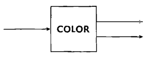 이를 다루기 위해서, 만약 우리가 고유상태들의 중첩의 색을 측정한다면, 어떤 일이 일어날지 고려해 보자. 우리가 색 속성을 측정할 기구들을 만든다면 어찌 될 것인가? 그림 17은 그러한 장비를 위한 도식을 보여준다. 우리의 목적을 위해, 색-측정 장비는 단순히 한 개의 입구와 두 개의 가능한 출구를 가진 블랙박스이다. 우리는 그 블랙박스의 안쪽을 신경쓸 필요는 없다. 우리가 알 필요가 있는 전부는 그것이 색에 따라 입자들을 정렬한다는 것이다. 즉 만약 우리가 왼쪽으로부터 입자를 보낸다면, 박스 안에서 입자의 색이 측정되고, 입자들의 색이 빨강으로 측정되면 위쪽 슬릿을 통해 오른쪽으로 나오거나, 색이 초록으로 측정되면 아래쪽으로 나온다.