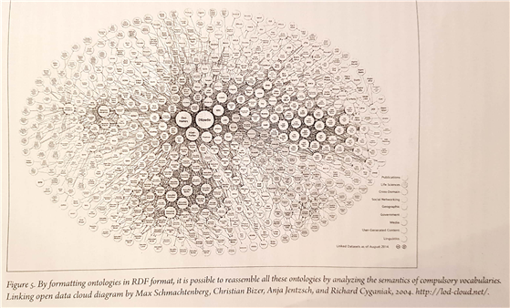 9) [역주]“시맨틱 웹 기술은 컴퓨터가 정보를 제공하기 위해 자체적으로 웹상의 정보를 탐색 및 수집하여 논리적으로 추론하는 정보처리기능이다. 이에 따라 인터넷 정보를 의미망으로 통합한 온톨로지(ontology) 형태로 이루어진다. 즉, 정보를 이해하고 다양한 정보 간 의미요소를 연결함으로써 지능적 판단에 따라 추출ㆍ가공하는 처리방식을 말한다. 이를 위해 컴퓨터가 인식할 수 있는 언어(시맨틱 마크업 언어)를 이용해 웹페이지의 정보를 나타내는 방식이 적용된다. 시맨틱 마크업 언어로는 XML(eXtensible Markup Language: 확장생성언어), RDF(Resource Description Framework: 자원서술체계) 등의 언어기술이 표준화되어 있다.”